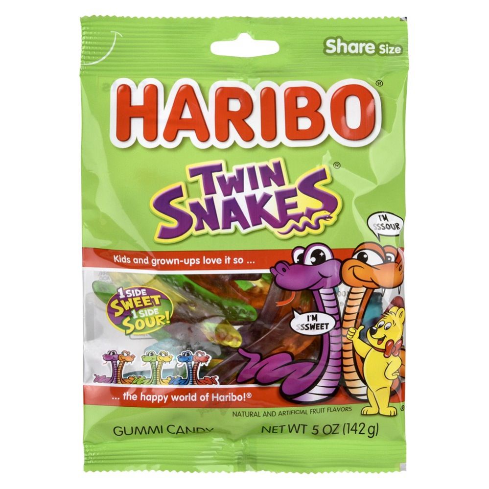 Add to WishlistEnjoy a sweet and sour candy experience with Haribo Twin Snakes in a 4oz pack. Each gummy features two connected snakes?one sweet and one sour?offering a fun and flavorful twist. Perfect for snacking, sharing, or satisfying your gummy cravings with a chewy, fruity treat.