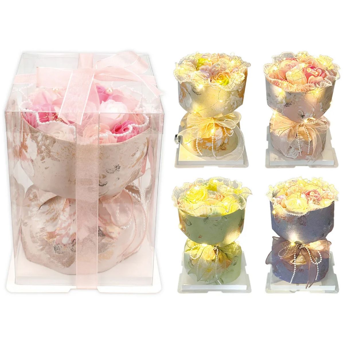 The LED Soap Rose is a charming and elegant floral display, perfect for Valentine?s Day. Featuring fragrant soap roses in assorted colors, this beautifully arranged bouquet is enhanced with LED string lights on thin copper wire for a warm and romantic glow. Individually packed, it makes a thoughtful and lasting gift for your loved ones.