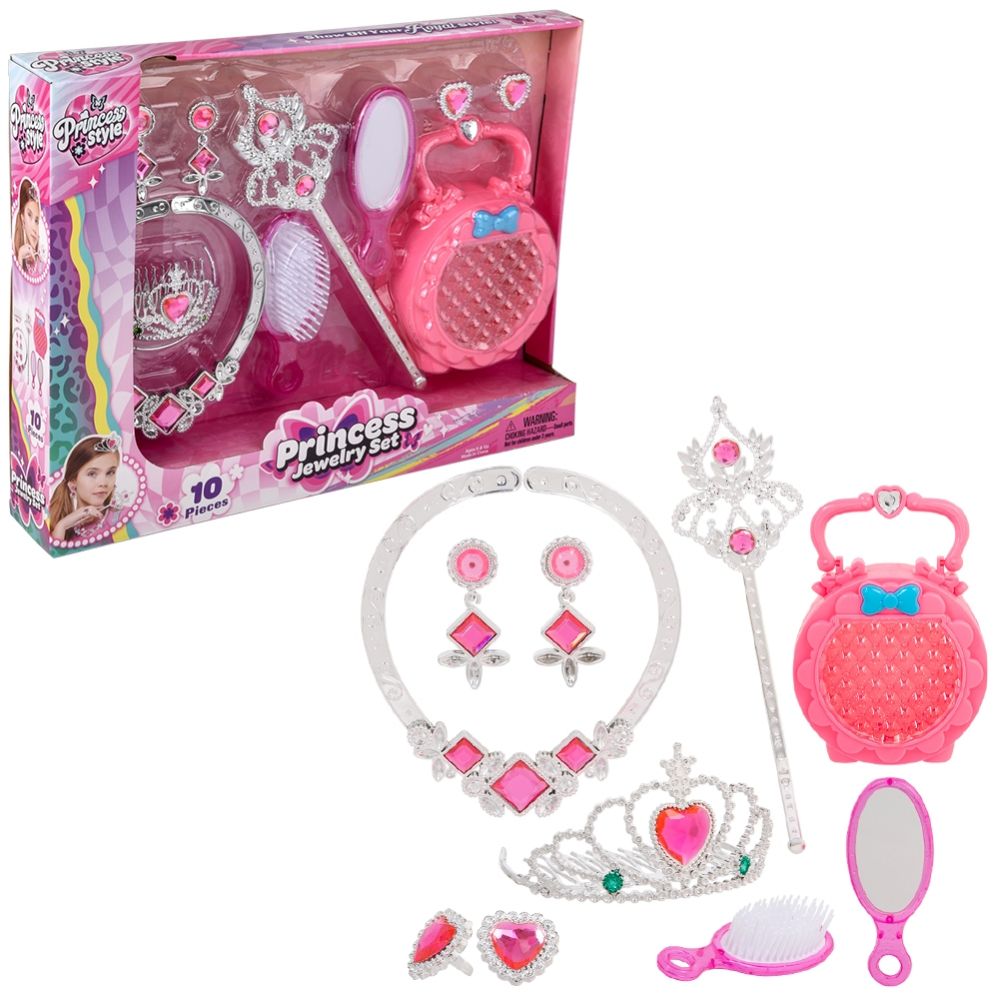 Add to WishlistLet kids feel like royalty with this pretend play princess jewelry & accessory set. Featuring sparkling necklaces, rings, tiaras, and bracelets, this set adds a magical touch to dress-up and imaginative play. Perfect for parties, playdates, and gifts, it encourages creativity and fun for little princesses.