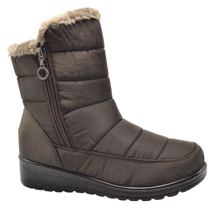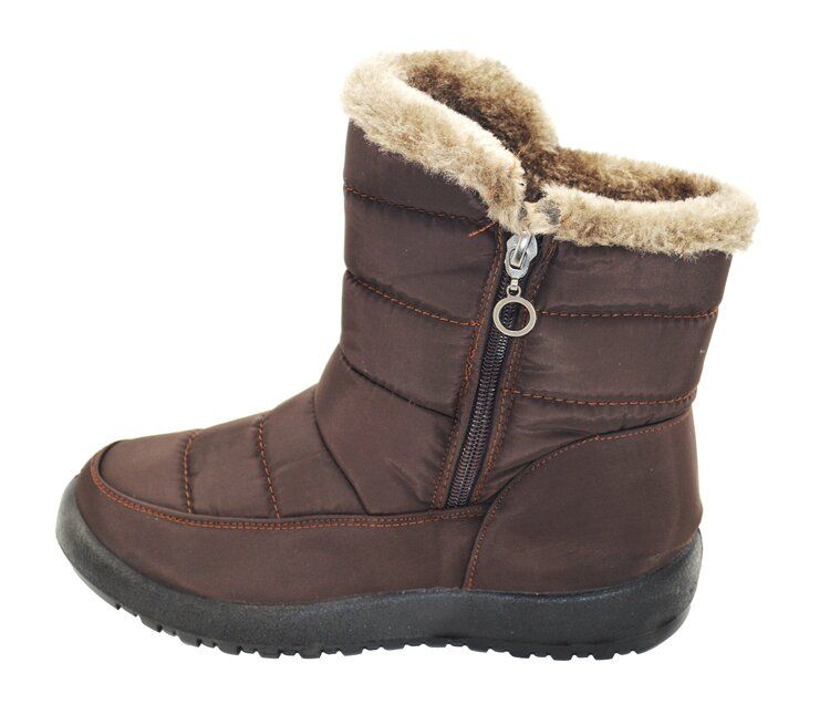 Stay warm and stylish this winter with these women's snow boots featuring a plush lining and convenient zip closure. Designed for comfort and durability, these boots provide excellent insulation while offering a secure and cozy fit. Perfect for cold weather, outdoor activities, and everyday wear, they are available in brown and assorted sizes from 5-10.
