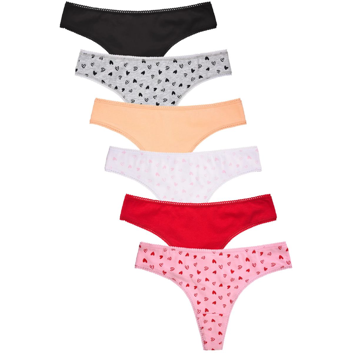 Assortment: 1 dozen - Black (2), Heather Grey_Print(2), Peach(2), White _Print(2), Red (2), Pink_Print(2)