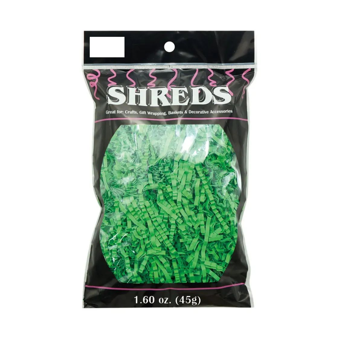 The Green Crinkle Paper Shred adds a decorative touch to gift baskets, packaging, and party favors while providing cushioning and protection. Made from high-quality, crinkle-cut paper, this 1.6oz pack is lightweight yet voluminous, making it ideal for filling boxes, bags, and Easter baskets. Its vibrant green color enhances presentation and gives a festive look to any gift arrangement.