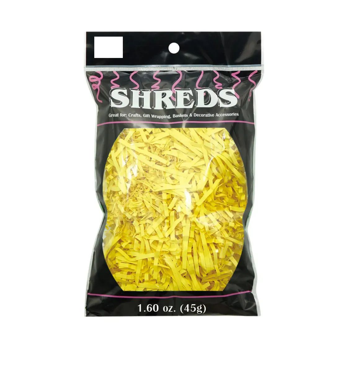 The Yellow Crinkle Paper Shred is a bright and cheerful packaging filler perfect for gift baskets, crafts, and party decorations. This 1.6oz pack of crinkle-cut paper adds volume and cushioning while enhancing the presentation of gifts. The vibrant yellow color makes it ideal for spring-themed events, birthdays, and baby showers.