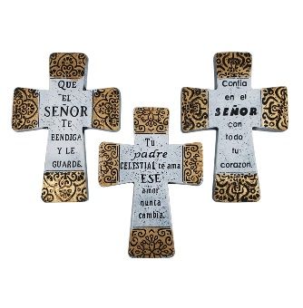 Add to WishlistInspire faith and positivity with this Cross Plaque featuring Spanish phrases, available in assorted designs. Measuring 5.9 inches, each plaque showcases meaningful messages in elegant typography, perfect for home décor, gifts, or religious settings. Crafted from durable materials, these plaques add a spiritual touch to any space.