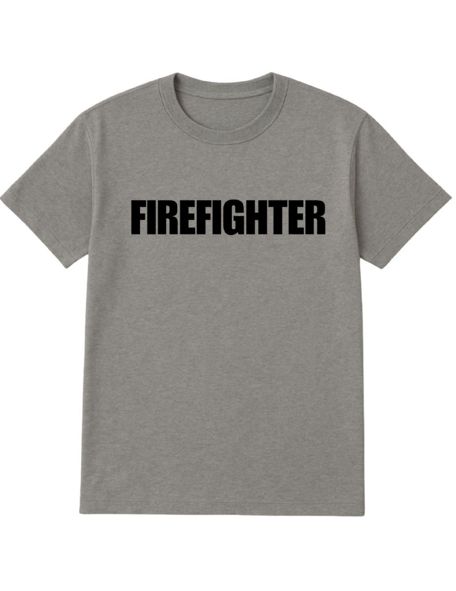 This Gray Firefighter T-Shirt is made from a comfortable cotton blend, designed for durability and station wear. Available here in Size XL, it's an essential part of the uniform for station duty or emergency response.