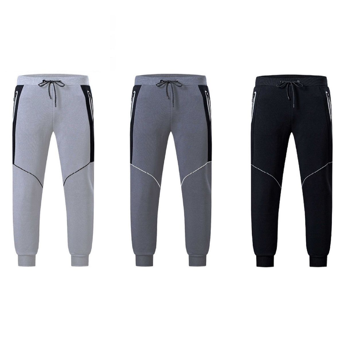 Men's Fashion Fleece Sweatpants offer a perfect blend of comfort and style. These cuffed pants feature a drawstring waist and zipper side pockets for added convenience.