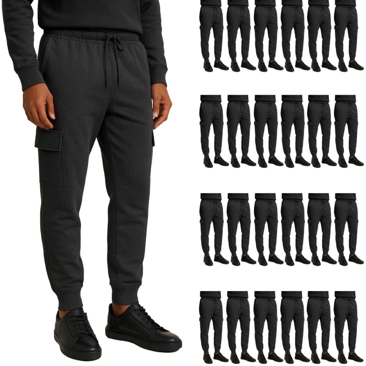 24 Pieces Mens Cotton Fleece Cargo Joggers In Black Assorted Sizes S-2xl - Mens Sweatpants