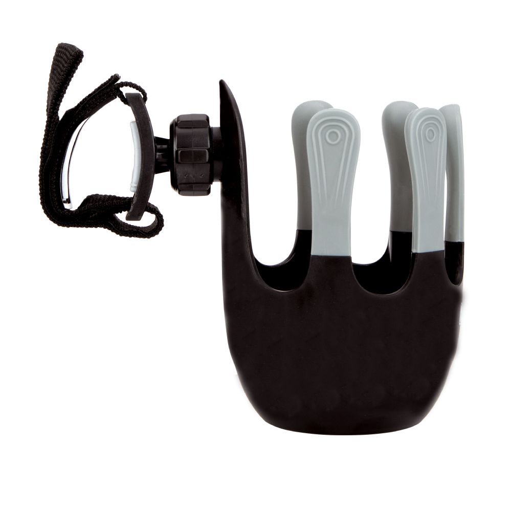 The Nuby Universal Cup Holder is designed to securely hold baby bottles, cups, or drinks, providing a convenient hands-free solution for parents while keeping drinks easily accessible during outings or at home.