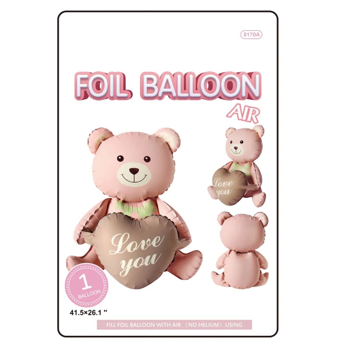 Features: Self-standing, air-inflated only, "Love You" text