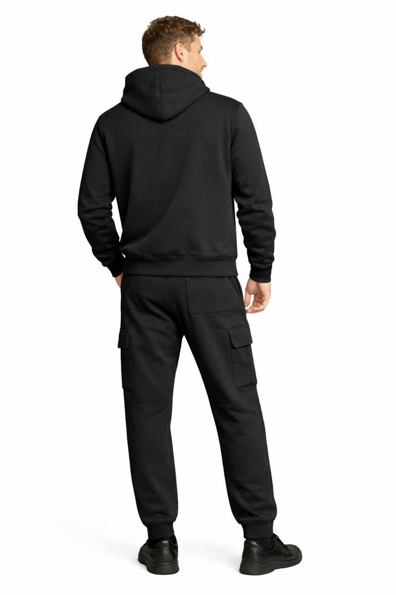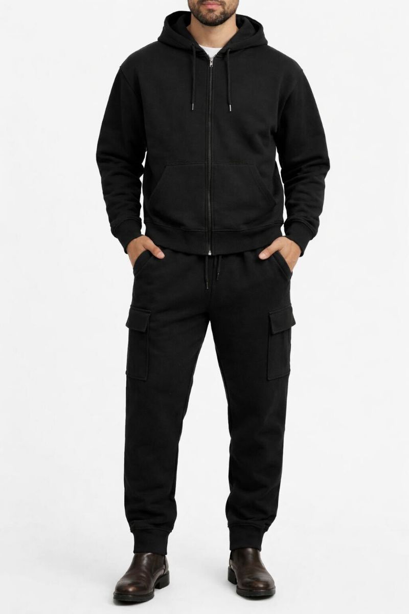 72 Pieces Cotton Fleece Cargo Jogger And Zipper Hoodie Set In Black Assorted Sizes M- 2xl - Men's Sweatpants For Donation