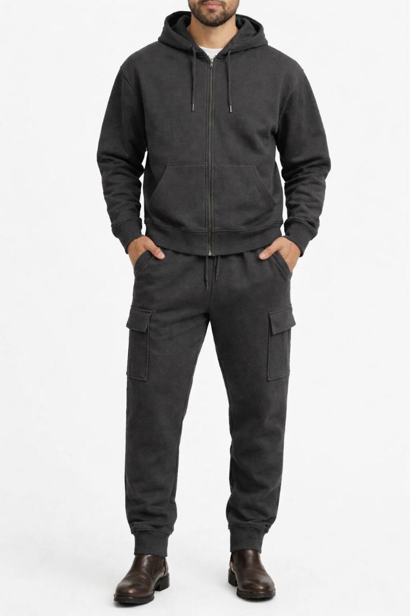 72 Pieces Cotton Fleece Cargo Jogger And Zipper Hoodie Set In Charcoal Assorted Sizes M- 2xl - Men's Sweatpants For Donation
