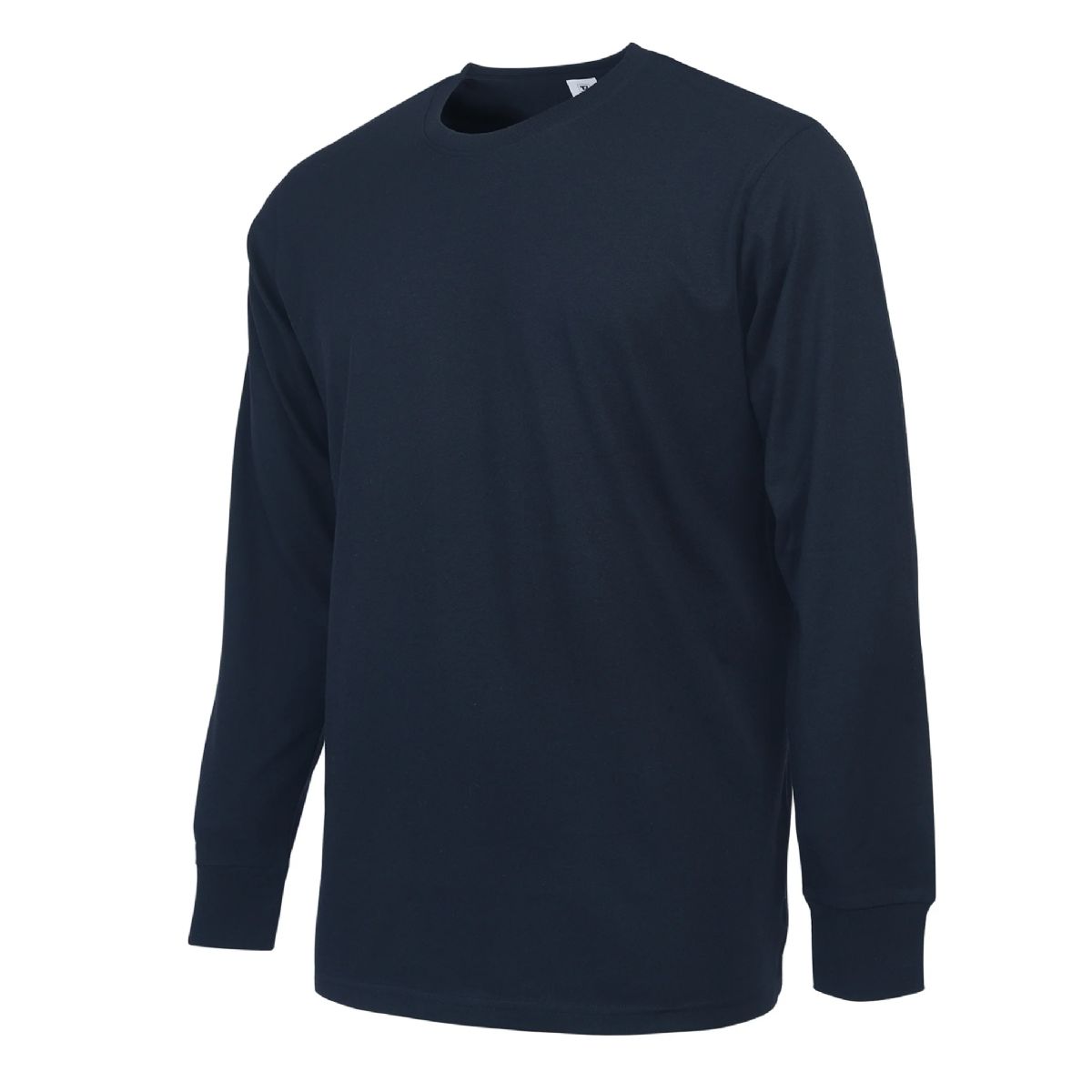 Experience classic style and all-day comfort with this men's long-sleeve T-shirt in a timeless navy. The timeless crew neck and ribbed cuffs provide a versatile look, making it an essential piece for layering or wearing on its own.