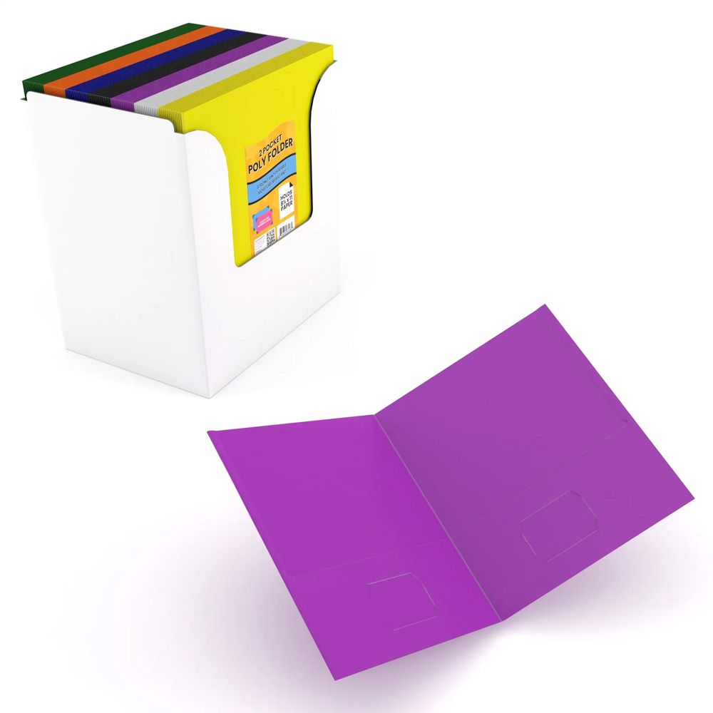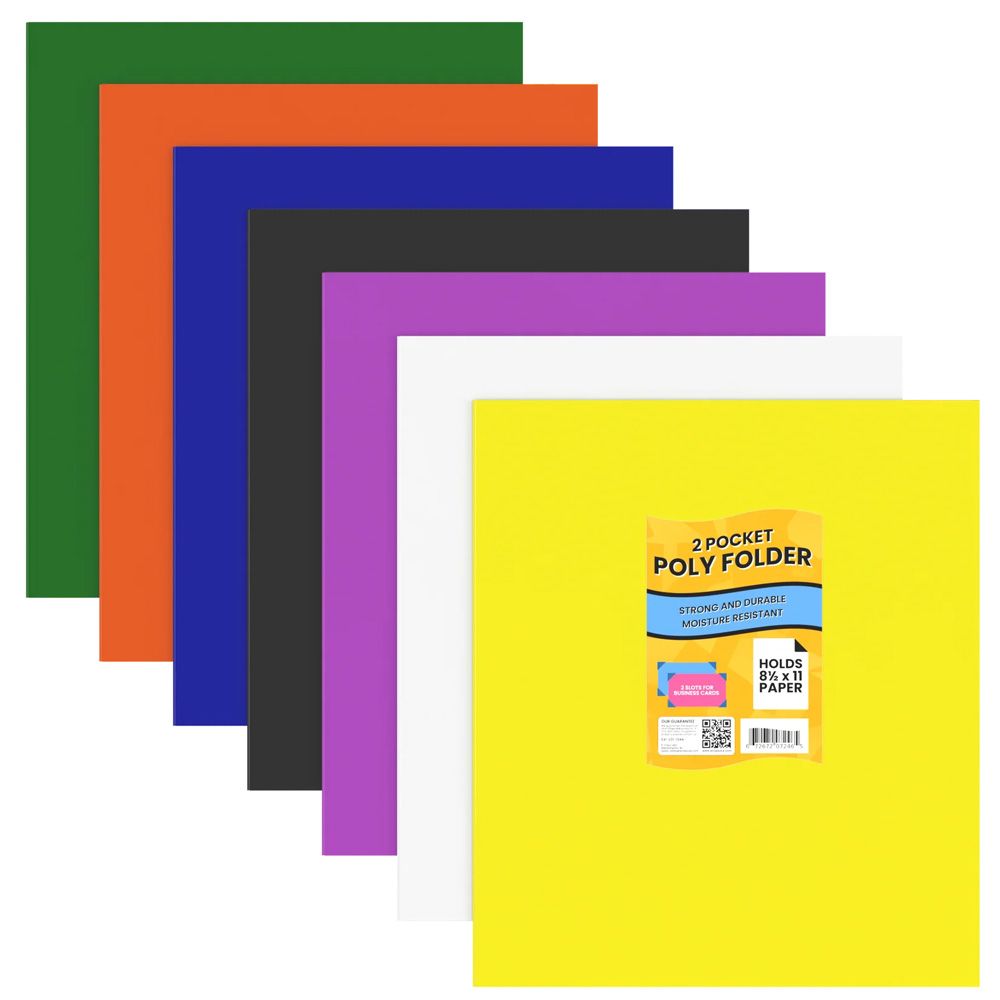 Stay organized and protect your documents with these matte-shiny assorted color 2 pocket poly folders. Built for durability and style, they?re ideal for school, work, or presentations.