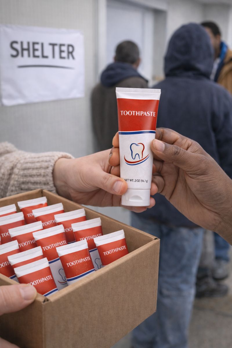 Ideal for shelters, nonprofit distributions, schools, emergency response efforts, hotels, and travel kits, this toothpaste fits easily into hygiene kits or care packages while offering a meaningful, everyday essential.