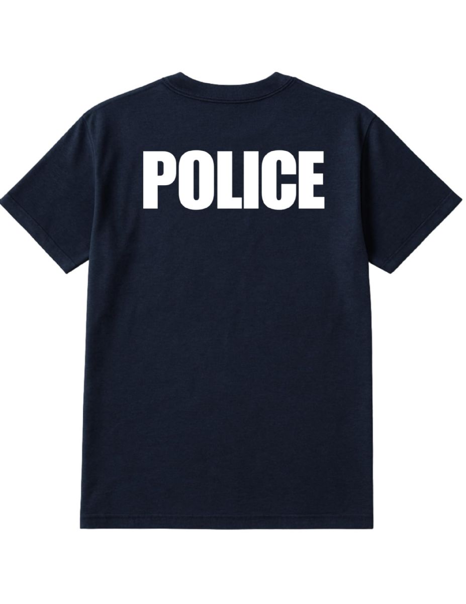 24 Pieces Unisex Cotton Police Printed T Shirt Navy With White Print Back And Front Size Large - Event Personnel Tees
