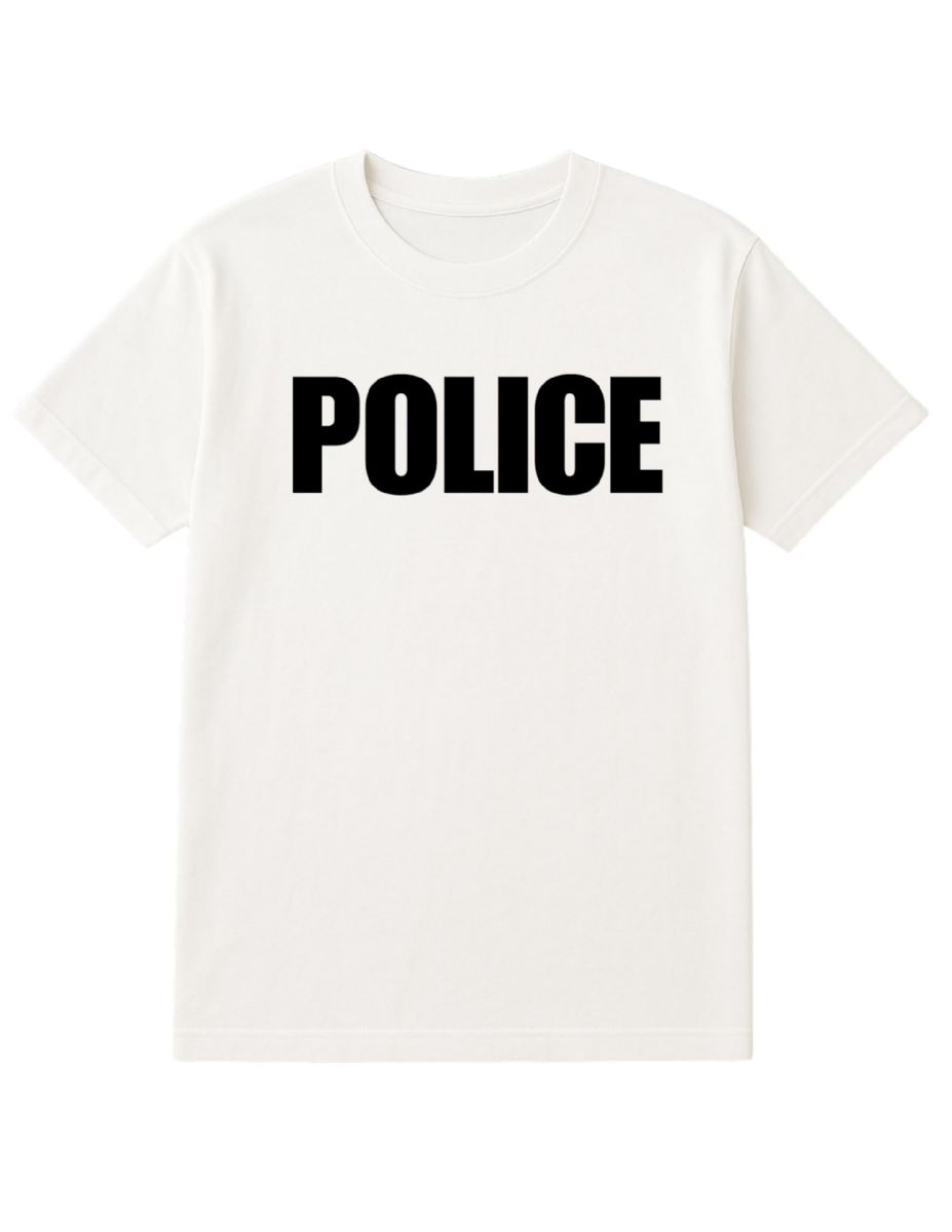 6 Pieces Unisex Cotton Police Printed T Shirt White With Black Print Back And Front Size Medium - Event Personnel Tees