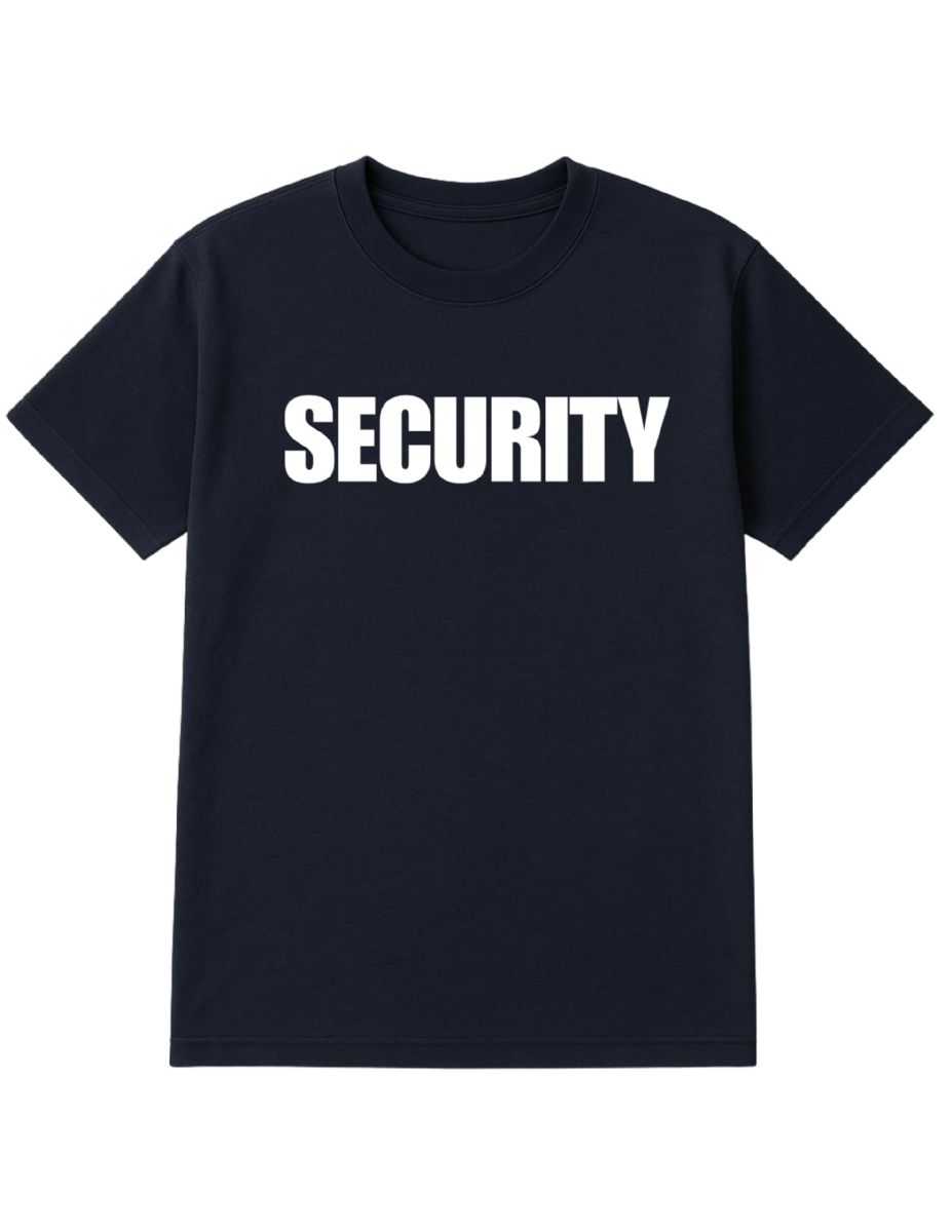 24 Pieces Unisex Cotton Security Printed T Shirt Navy With White Print Back And Front Size Large - Event Personnel Tees