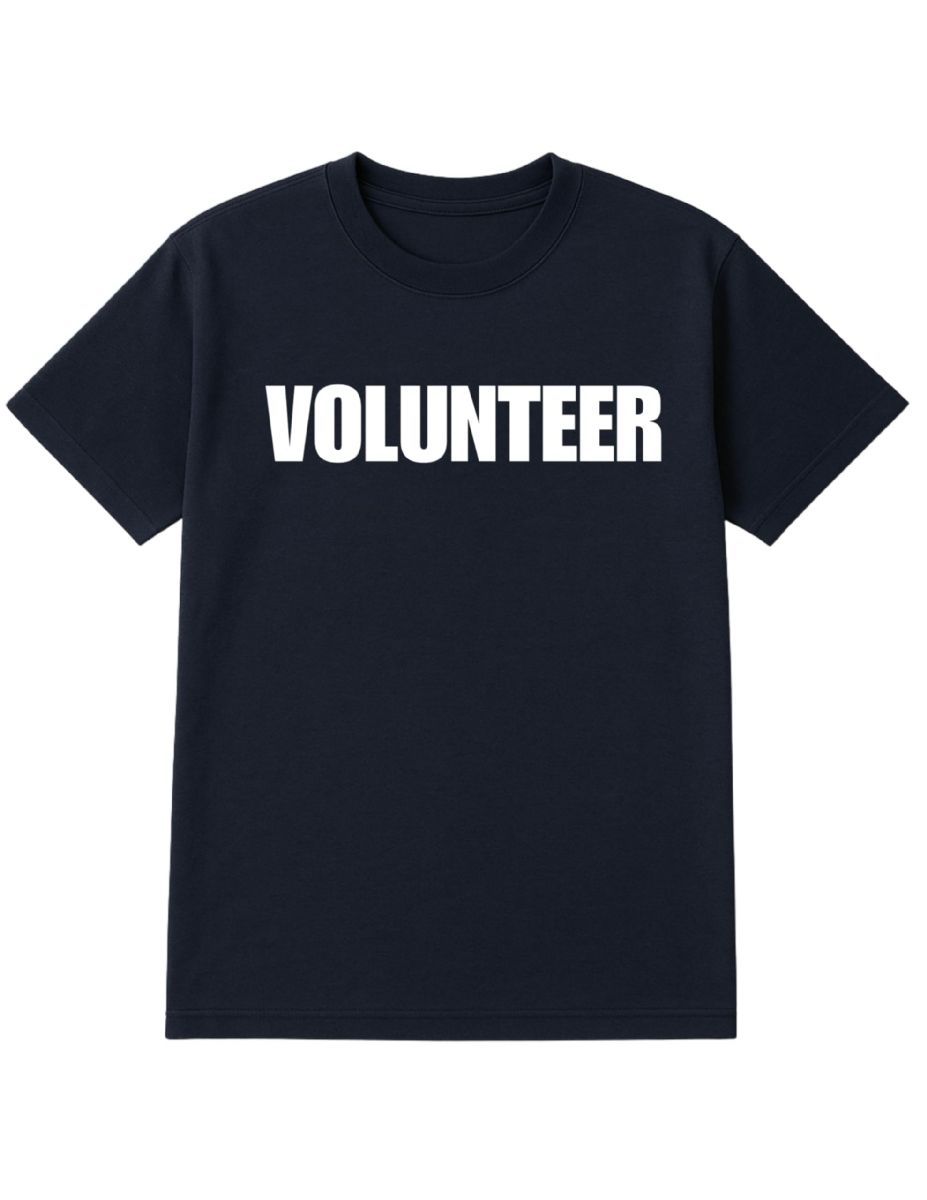 12 Pieces Unisex Cotton Volunteer Printed T Shirt Navy With White Print Back And Front Size Large - Event Personnel Tees