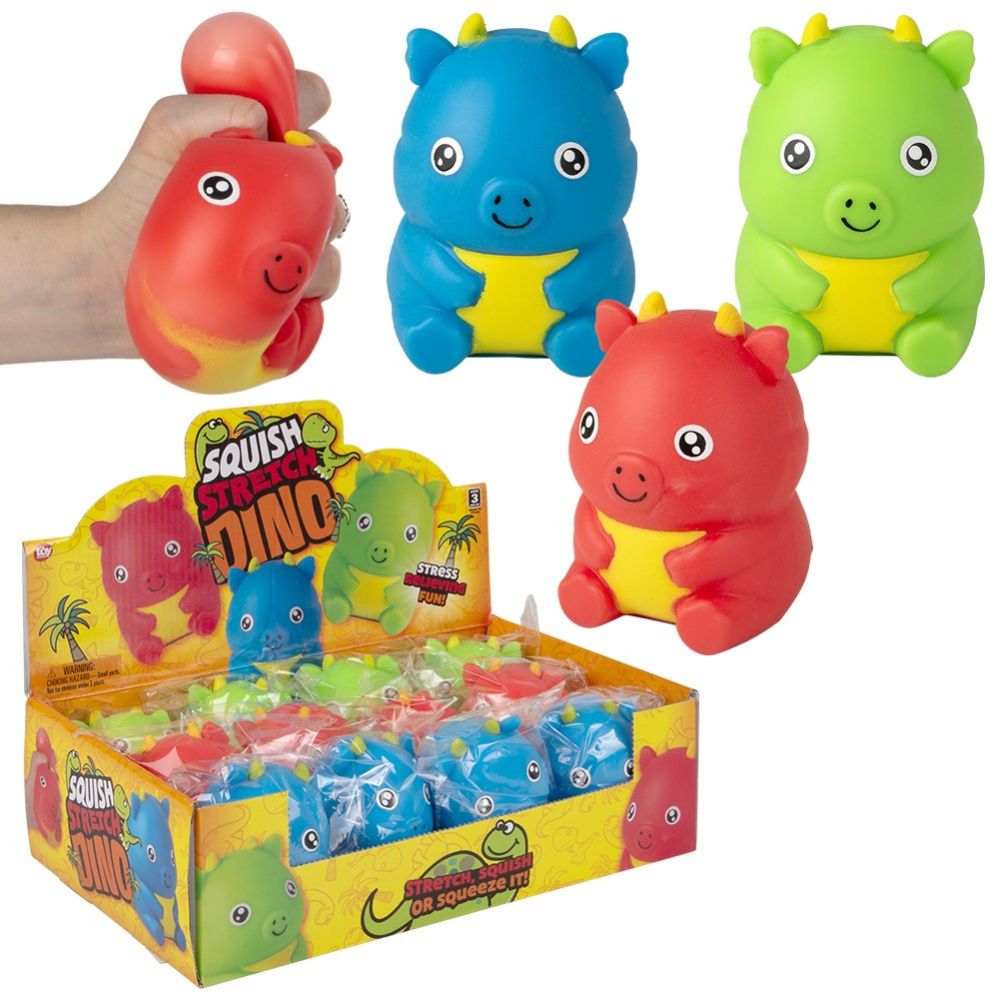 Add to WishlistThis bulk pack includes 12 adorable 4 Inch Squish And Stretch Dinosaur toys. These irresistibly soft and squishy dinosaurs are perfect for stress relief, sensory play, and imaginative fun. Their unique design allows for endless squishing, stretching, and shaping possibilities.