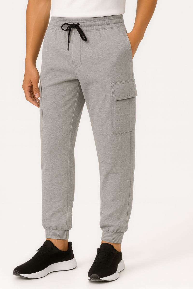 72 Pieces Mens Cotton Fleece Cargo Joggers In Heather Gray Assorted Sizes S-xl - Mens Sweatpants