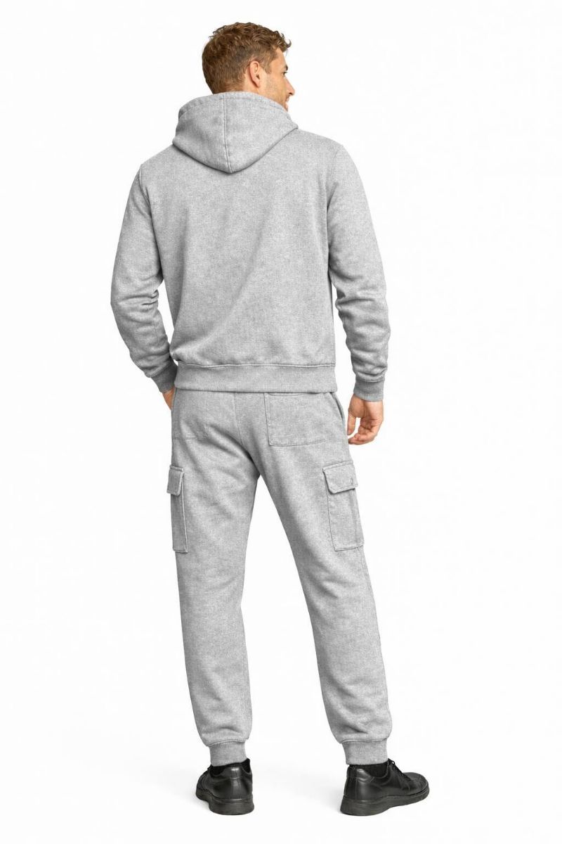 72 Sets Cotton Fleece Cargo Jogger And Zipper Hoodie Set In Heather Gray Assorted Sizes M- 2xl - Men's Sweatpants For Donation