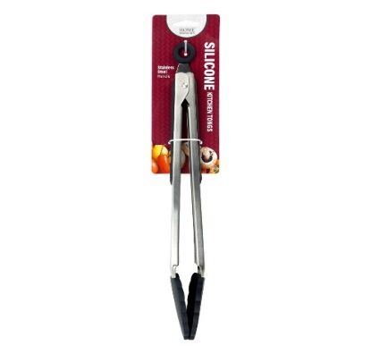 Add to Wishlistsafety in cooking and serving. Measuring 12 inches in length, these tongs provide ample reach for various culinary tasks. The stainless steel construction ensures durability, while the black silicone tips offer a secure grip and are safe for use with non-stick cookware. The heat-resistant silicone tips can withstand temperatures up to 600°F, making them suitable for grilling, frying, and serving hot dishes. An integrated locking mechanism allows for convenient storage.